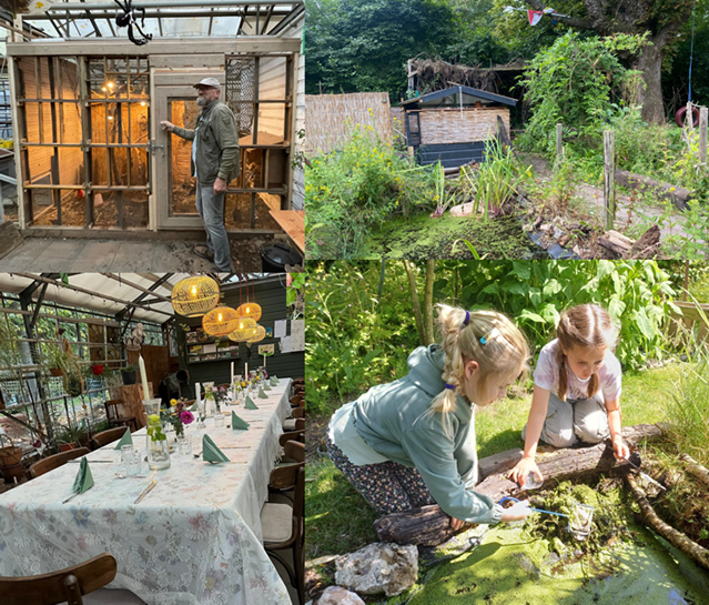 De kas en de tuin eromheen is de plek die door een actieve groep vrijwilligers wordt onderhouden. Er worden bloemen, fruit en groenten geoogst die gebruikt worden voor de Kindertuinen en Maaltijden op maandag (MOM). In het voorjaar worden er planten voor de andere locaties opgekweekt. Het is ook de plek waar vergaderingen en bijeenkomsten plaatsvinden.