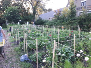 Op de akker van Stadslandbouw Van Ruytenburch aan de Westlandseweg 250 worden bloemen en groenten gekweekt. De bloemengroep bestaat uit ongeveer 16 enthousiaste vrijwilligers, die een, twee of drie dagen of dagdelen per week op de akker aan het werk zijn. We kweken een ruim assortiment van eenjarige en vaste snijbloemen, waaronder dahlia’s, zonnebloemen en lathyrus.
