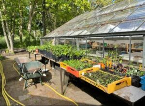 De kas en de tuin eromheen is de plek die door een actieve groep vrijwilligers wordt onderhouden. Er worden bloemen, fruit en groenten geoogst die gebruikt worden voor de Kindertuinen en Maaltijden op maandag (MOM). In het voorjaar worden er planten voor de andere locaties opgekweekt. Het is ook de plek waar vergaderingen en bijeenkomsten plaatsvinden.